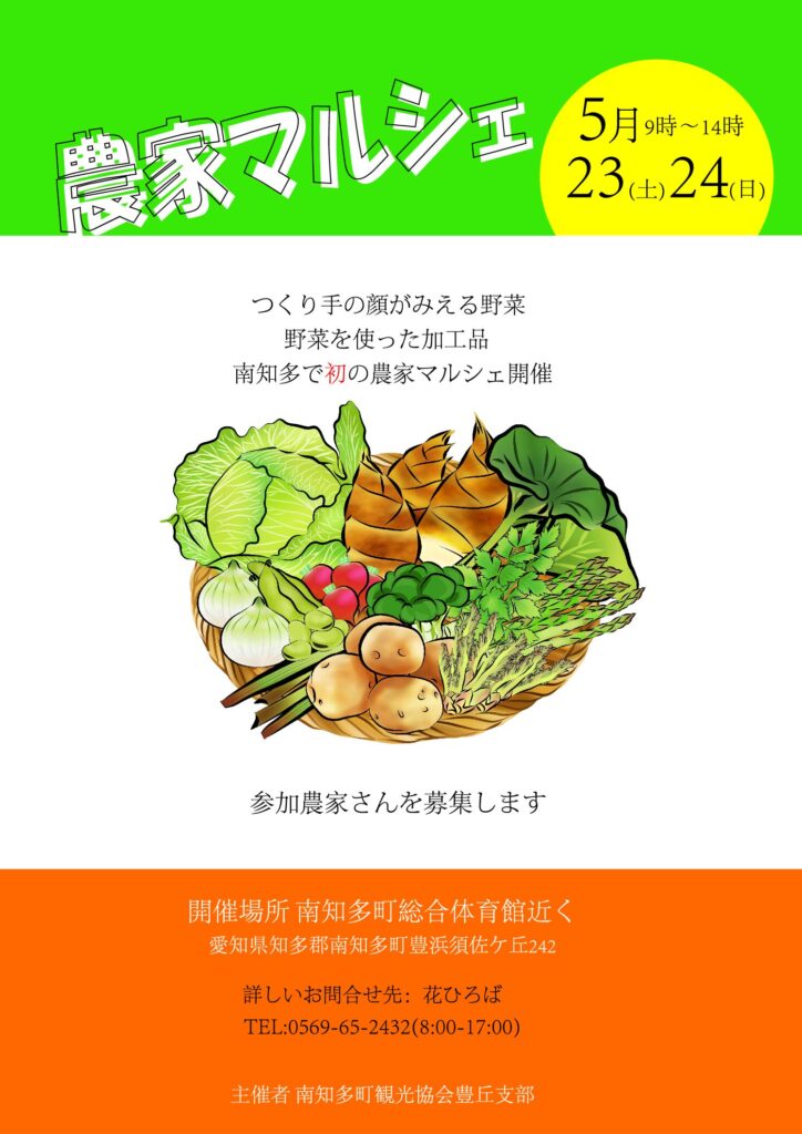 南知多町の農家さんが中心の野菜・加工品マルシェを開催いたします。