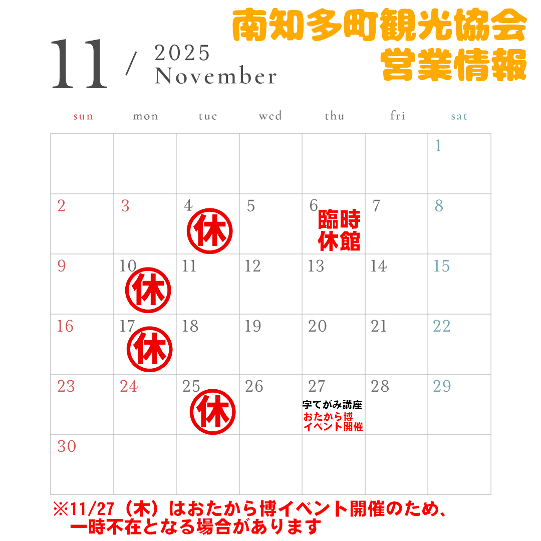 11/6(木)観光協会臨時休館のお知らせ
