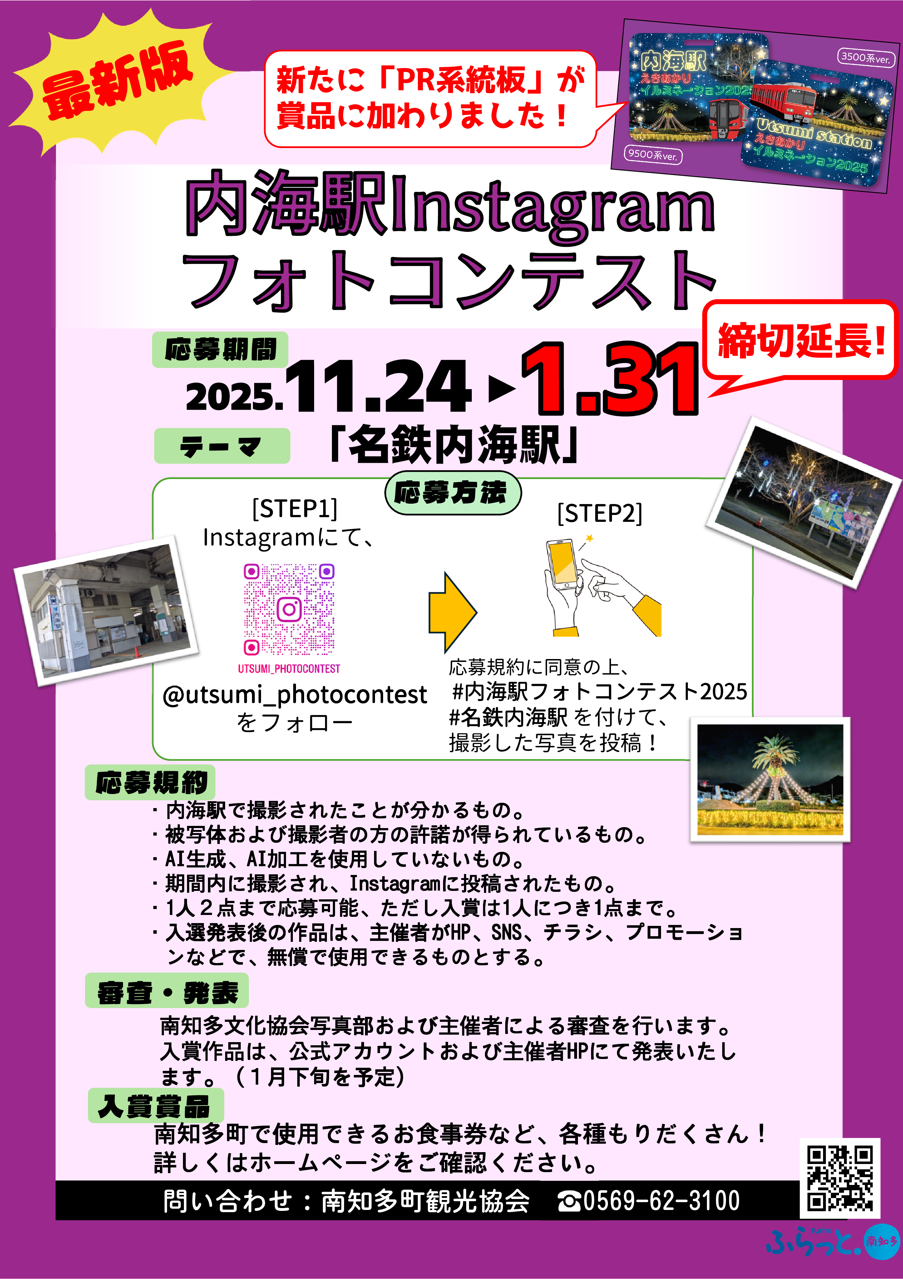 - 【期間延長・賞品追加!】内海駅Instagramフォトコンテスト開催