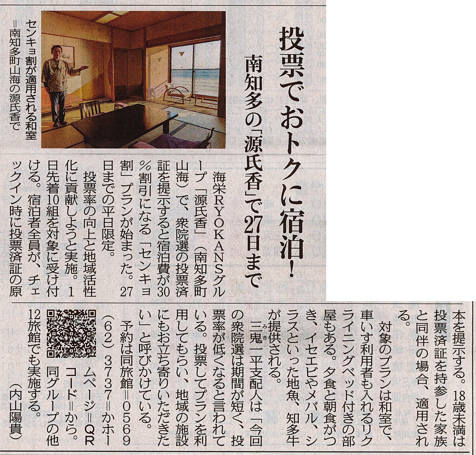 海栄RYOKANSグループ「源氏香」で衆議院議員選挙の投票済証を提出すると、宿泊費が30%割引になる「センキョ割」プランがはじまりました!