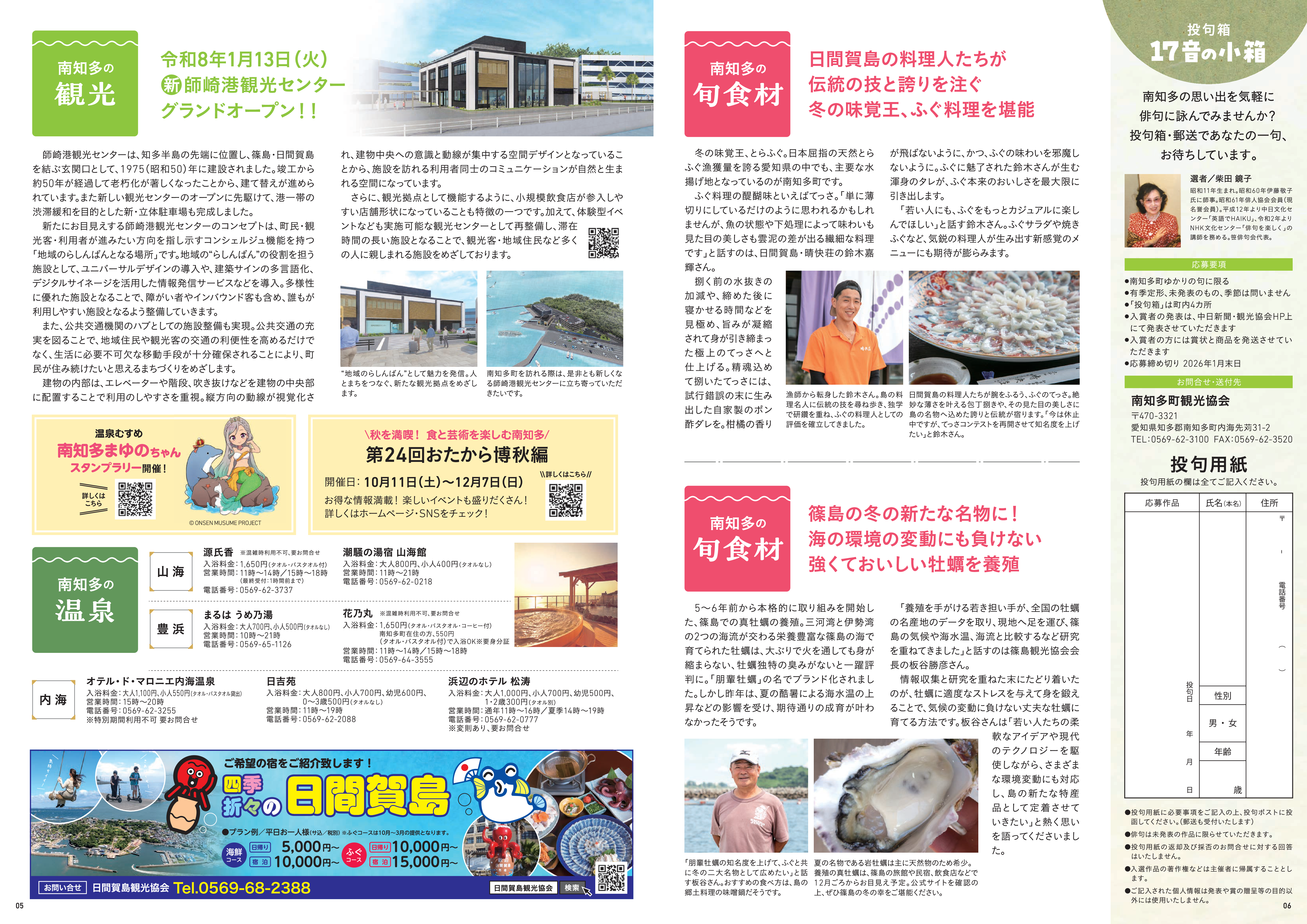 今回は南知多町の誇る「グルメ」をメインテーマとし、豊かな漁師町として知られる師崎を中心とした特集を行いました。